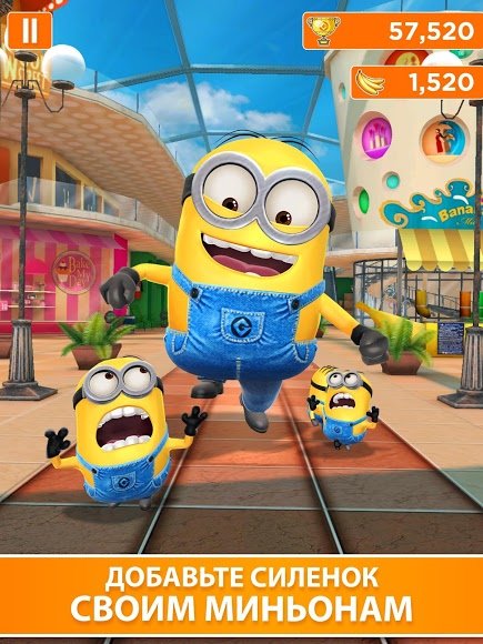 Гадкий Я: Minion Rush – бегалка для мобильных устройств с яркой анимацией и необычным подходом к игровому процессу. Что тут говорить, если разработкой игры занимался монстр развлекательной индустрии Gameloft? Это сразу же откидает вопрос о качестве графики и самом игровом процессе. Просто наслаждайтесь завораживающими приключениями желтых существ и помогите им отыскать идеальный рецепт бананового варенья.